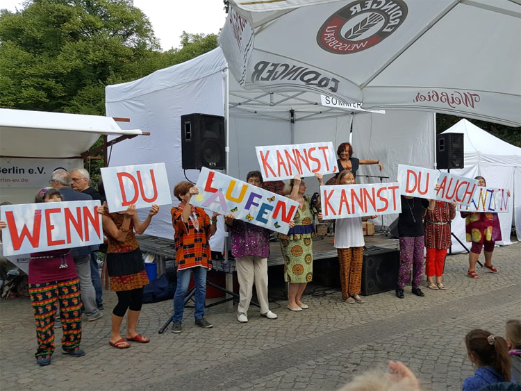 Nach einer sanften Aufwärmung, einigen Übungen zur körperwahrnehmung und der Möglichkeit, frei zu tanzen erarbeiten wir eine kleine Choreografie.